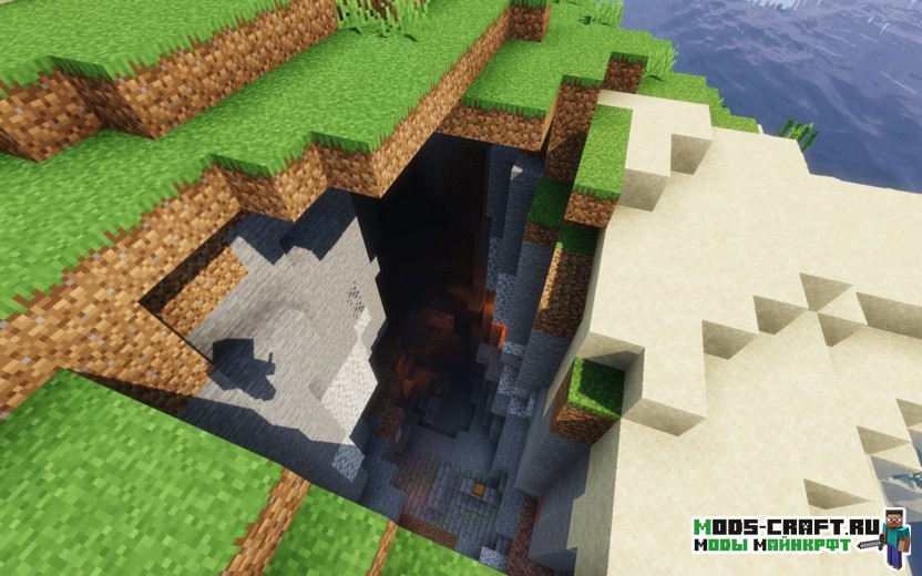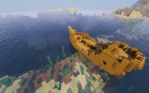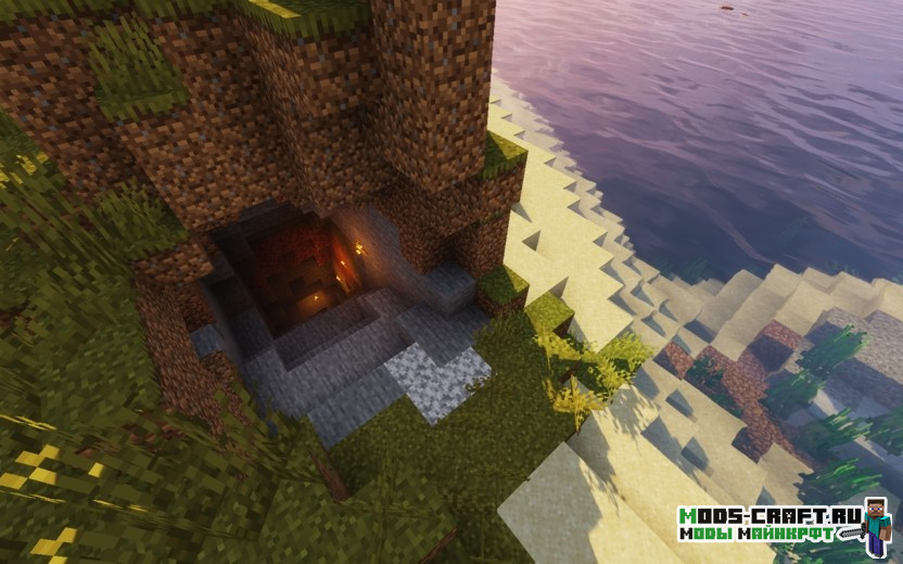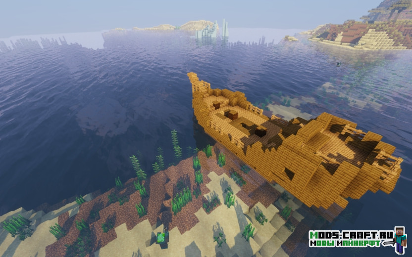 В данном сиде вы очутитесь на берегу моря и в вашей видимости прямо окажется корабль с хорошим лутом, а слева небольшая пещерка с рудами. Рекомендую его сразу же её обыскать и следовать по мелководью к кораблю. Если плыть дальше и немного на запад, то можно найти подводный храм, который находится по координатам 270, 141. А самая вишенка находится по координатам 1140, 865 — это портал в Эндер-измерение и подземная крепость. Находится она в расщелине на небольшом островке.