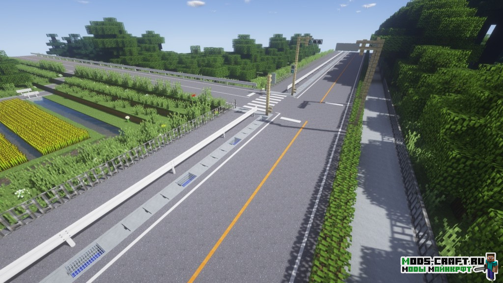 Помимо основных блоков, вроде асфальта и разметки, вы сможете создавать дорожный водосток, бочки, отбойники, различные ворота для заездов и даже ограничители движения. В общем, тут можно создать городскую современную дорожную систему для движения автомобилей. Скачайте себе для езды по этим дорогам мод на машины и радуйтесь!