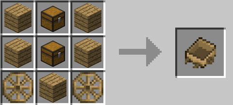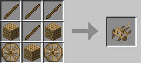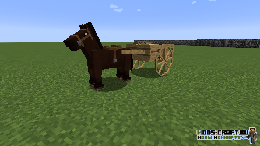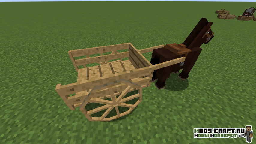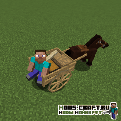 Мод AstikorCarts добавляет передвижные повозки для лошадей в Майнкрафт! В них могут быть запряжены ослы или лошади, а далее использоваться для перевозки людей и сундуков с предметами. Очень удобная штука, если нам необходимо доехать куда-то с хранилищем на лошади или с друзьями.