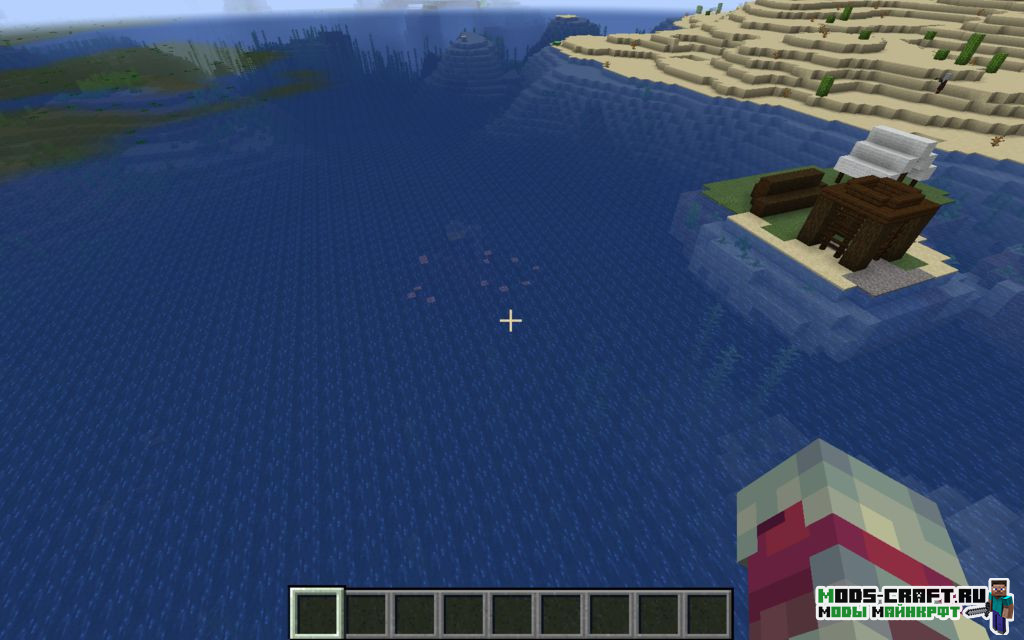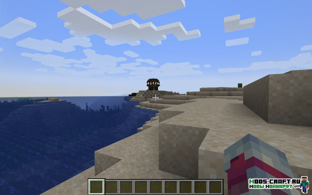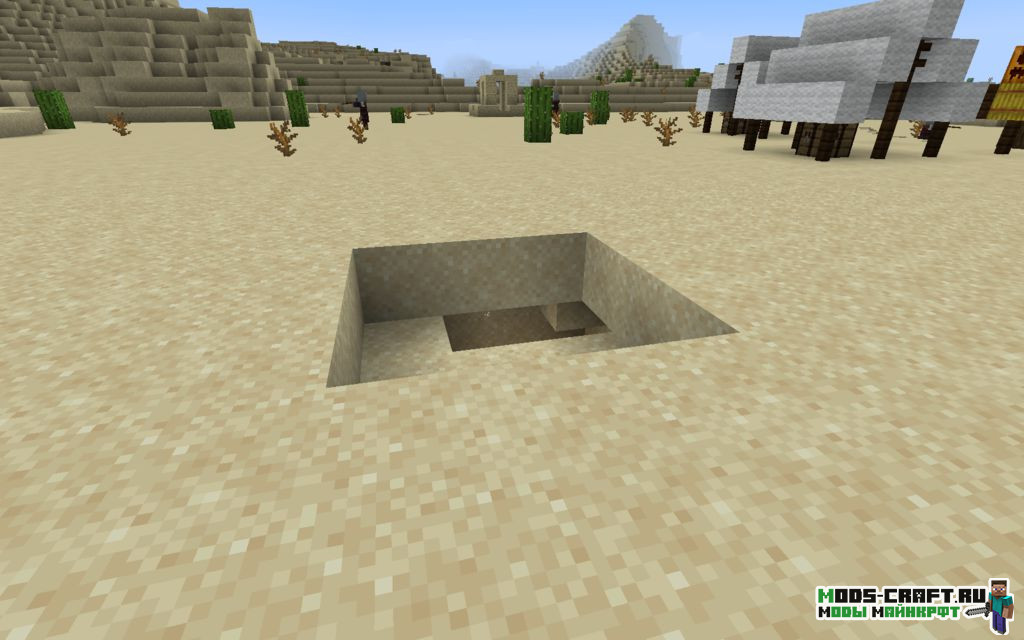 Вы окажитесь в пустыне прямо перед аванпостом разбойников, который находится на берегу океана. Рядом с ним под водой находится разрушенный портал, в сундуке которого есть золотые ботинки, нагрудник, меч на добычу III и ботинки на шипы III. Также рядом с аванпостом есть интересная пещера, не буду говорить что там — исследуйте сами.