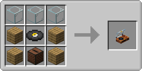 С помощью данного мода в Майнкрафт появляется улучшенный проигрыватель музыки. В отличии от ванильного, пластинки для него уже будут встроены в блоке и доступны из меню. Это позволяет слушать любимые песни без их длительных поисков и охоты на тандем криперов со скелетами или создании генераторов с ловушками. Место для вставки пластинок обновляется до компактного сундучка, который можно разместить на столе или любой другой поверхности, что делает его очень компактным.