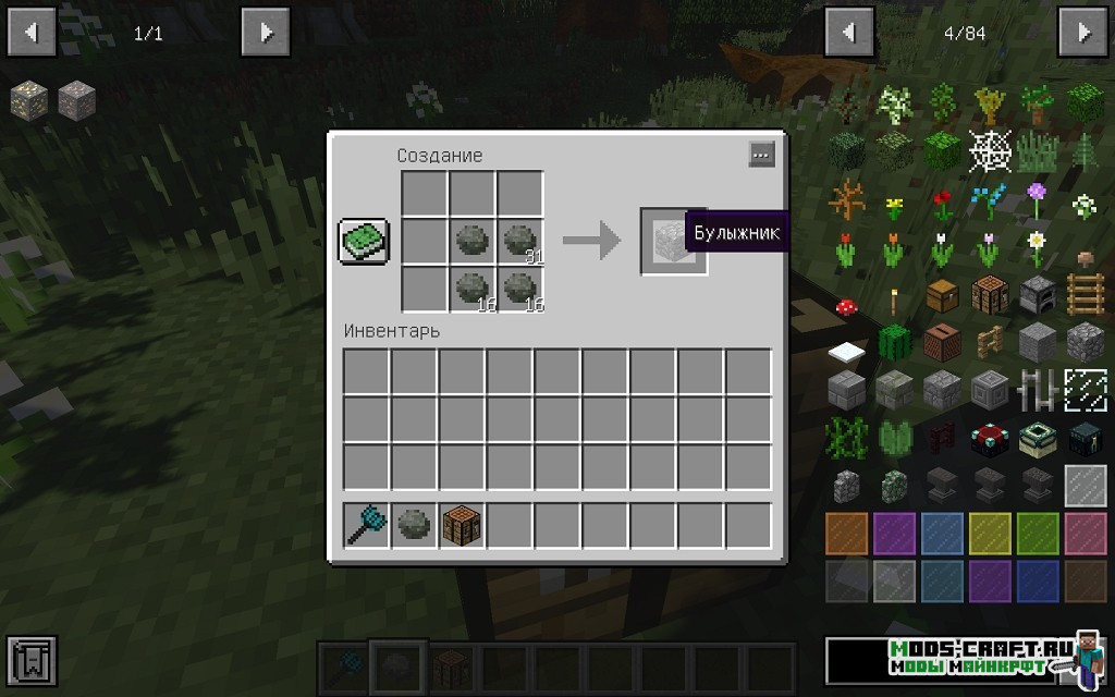 - Камни можно собрать на земле, сделать булыжник можно из них;
