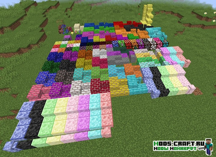 Данный мод добавит более тысячи декоративных блоков и предметов, предназначенных для строительства и украшения вашего дома. Все добавленные блоки можно получить в выживании путём крафта.