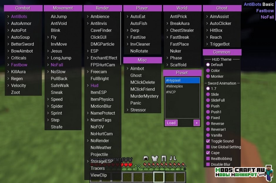 Самый лучший чит Flux на майнкрафт, которые так любят все читеры теперь доступен для сех версий игры! Он умеет обходить все известные античиты на данный момент и вы будете безнаказанно его использовать. В Flux B13 появились новые функции читов — Kill Aura, Anti Bots, Anti Knockback, Anti Fire/Potion, Auto Armor, Auto Clicker, Speed, Inventory Cleaner, No Fall, Break Aura, Fly, Xray и другие.