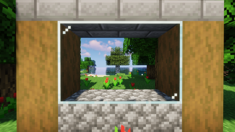 Ресурс пак позволяет добавить в игру совмещенные текстуры с отсутствием полос, что позволит любоваться большими панорамными окнами в которых не будет рамок между блоками. Изменятся как обычное и тонированное стекло, так и панели из него.