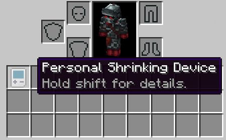 Чтобы войти в комнату блока, используйте специальное устройство — Personal Shrinking Device, нажав им ПКМ на блок. Крафт устройство находится ниже.