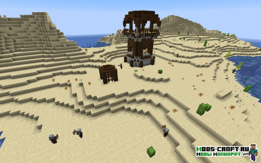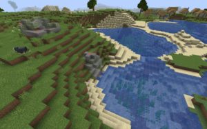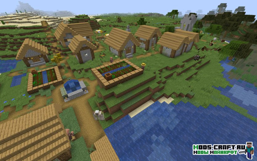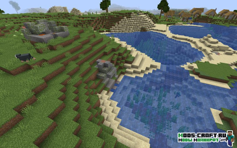 Сид перенесёт вас прямиком на большую равнинную деревню, в которой можно набрать ценные ресурсы для развития. Пройдя чуть дальше деревни, мы можем наблюдать руины, часть которых скрыта под водой с утопленниками, их координаты: -320, -264. В одной из развалин можно найти карту клада, который будет совсем рядом с деревней. После этого мы можем направиться прямиком к аванпосту разбойников, чтобы защитить жителей. Аванпост стоит в координатах -490, -408.