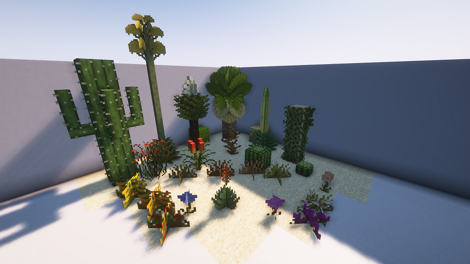 Одно из основных изменений, внесенных модификацией, — это уникальная растительность, которая будет присутствовать в новых пустынных биомах. Вы можете обнаружить новые виды растений, которые обогащают окружающую среду и придают пустынным местам больше жизни.