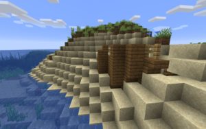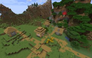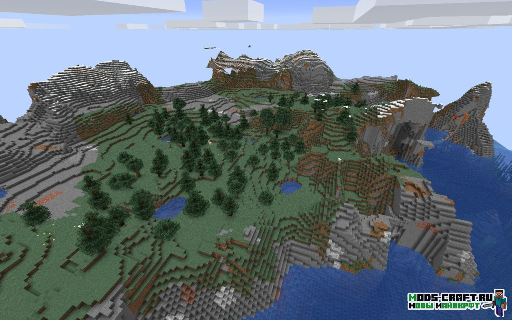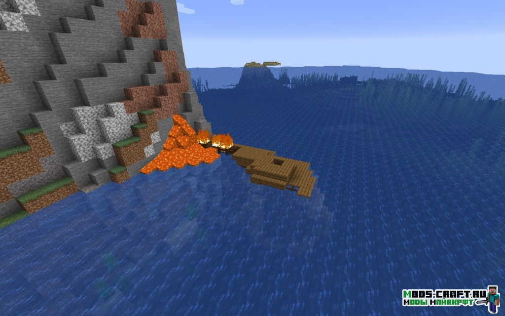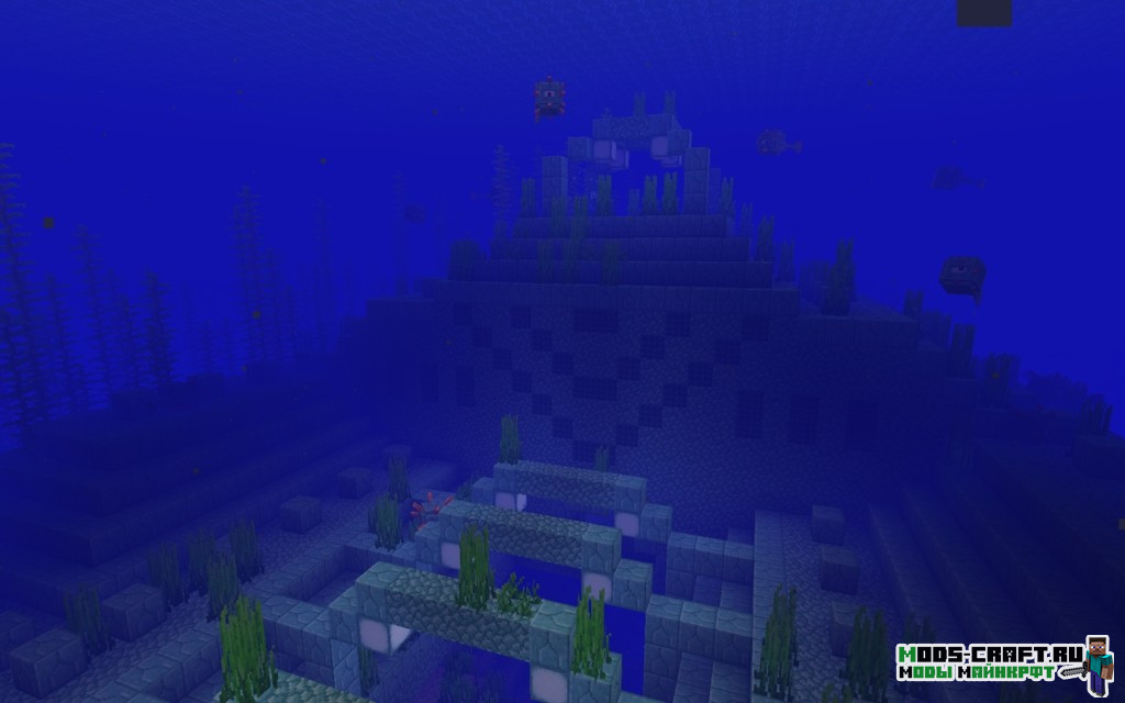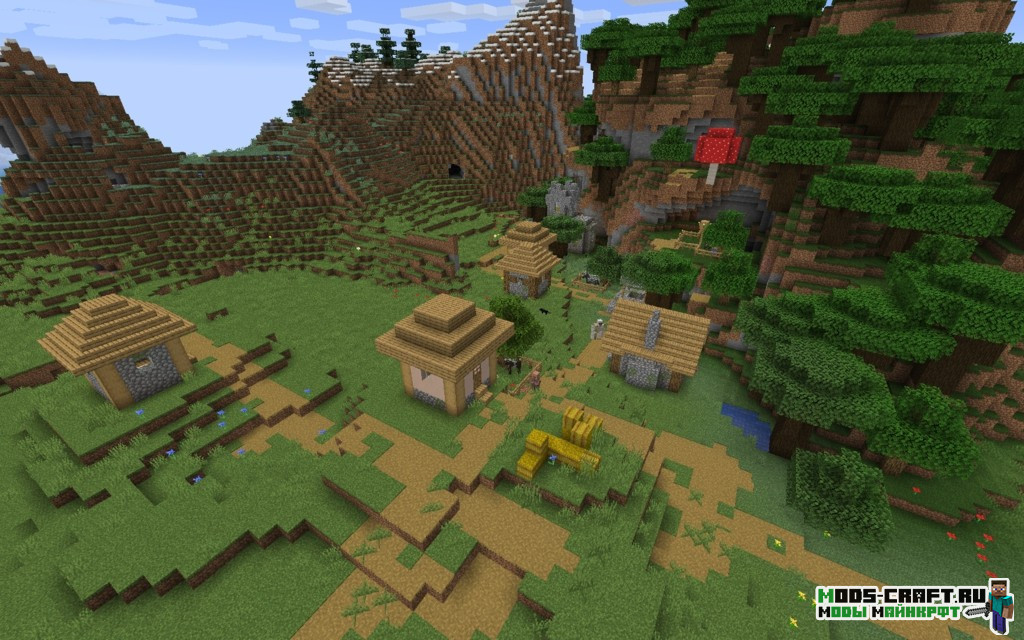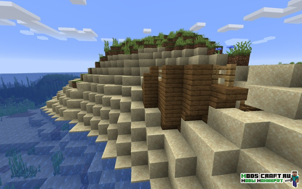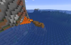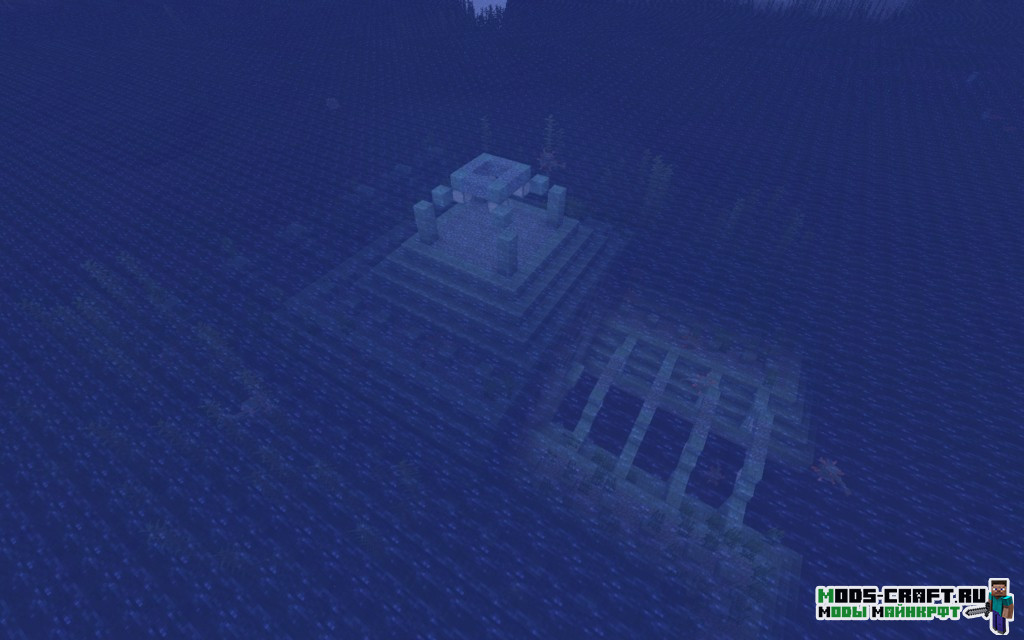 Внимательно осмотритесь, к северу от вас есть два подводных храма с координатами 130, 120 и 220, -150. Их неплохо было бы изучить на наличие редких предметов. Также неподалёку будет разбившийся корабль на берегу, в котором есть зачарованный сет брони. Если плыть на юг от точки спавна, то можно найти две равнинных деревни (координаты: -750, 850 и -750, 1050).