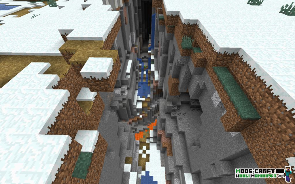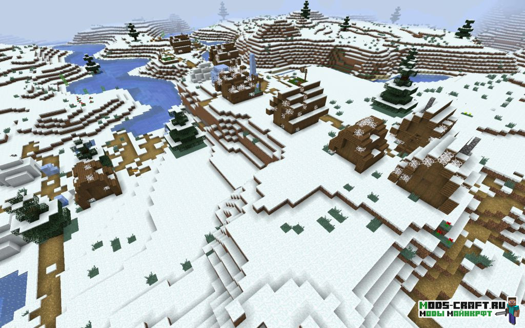 Сид перенесёт вас на снежный биом, где рядом находятся две деревни: зомби и обычная. Помимо этого рядом с ними есть две иглу, одна рядом с обычной деревней, а другая рядом с зомби-деревней. Также вы увидите интересный каньон, спустившись в который можно добыть много ценных руд и сокровищ.