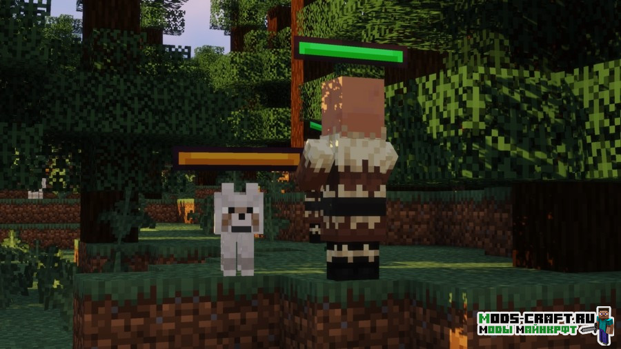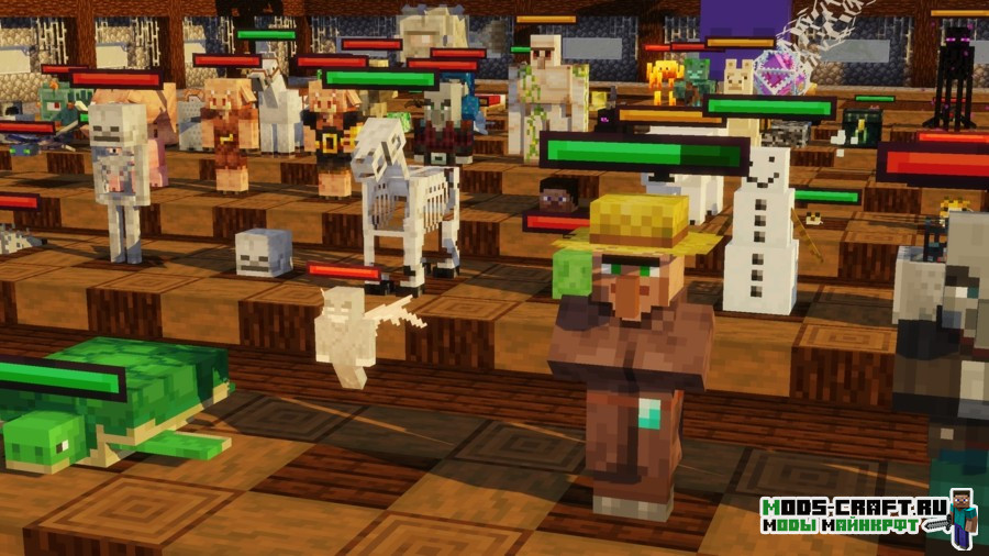 Ресурспак Entity Healthbars поместит над головами мобов красивую панель с отображением здоровья. В зависимости от типа моба будет меняться цвет панели: пассивный — зеленый, нейтральный — оранжевый, враждебный — красный.