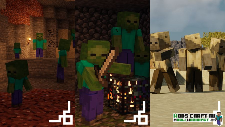 Fresh Animations — это пакет ресурсов, который переделывает все анимации мобов, дав им новые движения конечностей и эмоции. Главная идея состоит в том, чтобы сделать мобов более динамичными и правдоподобными, не нарушая при этом ванильную атмосферу игры Майнкрафт. Основное вдохновение автор черпает из Minecraft Dungeons и различных мини-фильмов.