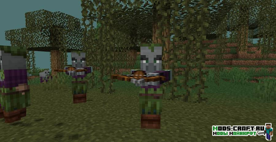 Ресурс-пак использует функцию Optifine, чтобы дать соответствующую текстуру разбойникам в зависимости от биома по аналогии с деревенскими жителями.