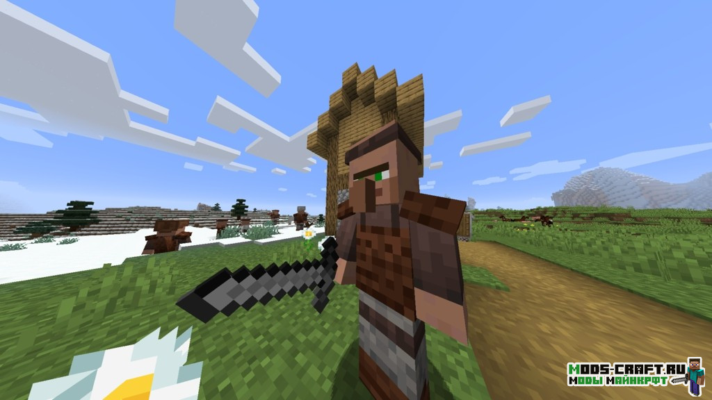 Вы устали от того, что ваша деревня постоянно подвергается нападению бандитов и её некому кроме вас защитить? Тогда вам отлично подойдёт мод Guard Villagers, который добавит специальных защитников в вашу деревню. Это будут группы по 6 человек на одно поселение, вооружённые мечом или арбалетом, можно их клонировать с помощью нажатия ПКМ + держа в руках меч или арбалет. Также изменениям подвергнуться и бандиты — у них появятся иллюзоры, а ведьмы станут нападать на жителей.