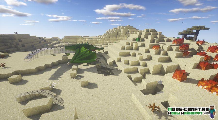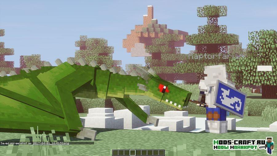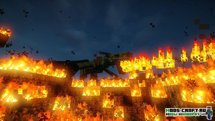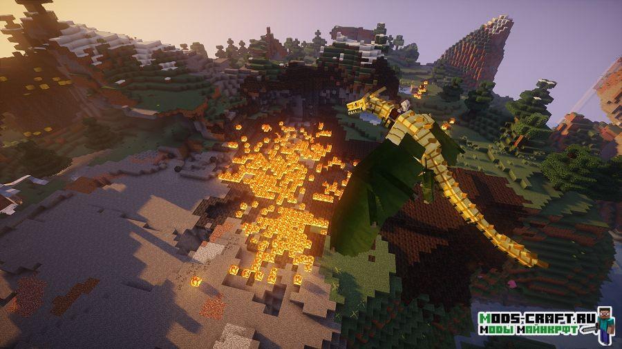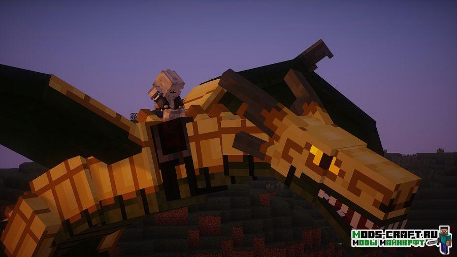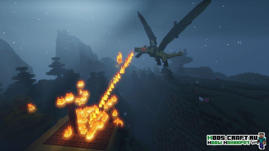 Ice and Fire — это глобальный мод, который добавит в игру множество разных драконов, пылающих огнём, льдом и даже молнией. Огненный драконы обитают в жарких биомах и способны испепелить игрока за считанные секунды, а ледяные живут в холодных биомах и им не составит труда заморозить любого одним мгновением. В последних версиях появилось большое количество новых видов драконов и мифических и других существ: циклопы, тролли, змеи, снежные люди и другие опасные твари. У жителей появится красивая тематическая одежда под их место обитания. Вы сможете создавать новые виды оружия, брони, инструментов, руд, флагов, баннеров, блоков и находить новые руды.