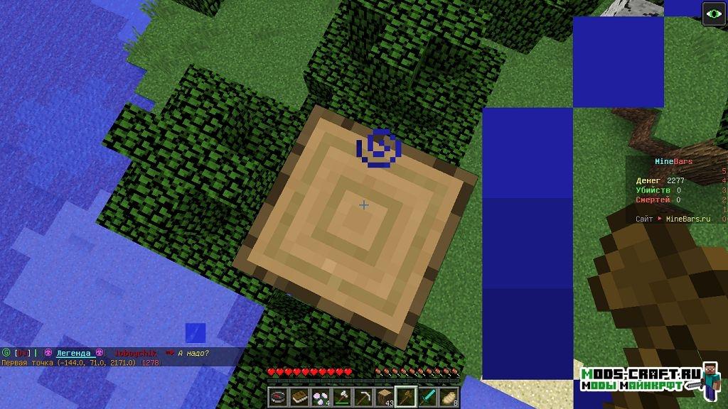 Вообще это действие довольно простое, нам нужно взять в руки деревянный топор и выбрать первый блок левой клавишей мыши (ЛКМ), откуда мы хотим выделить начало нашего региона, как на картинке: