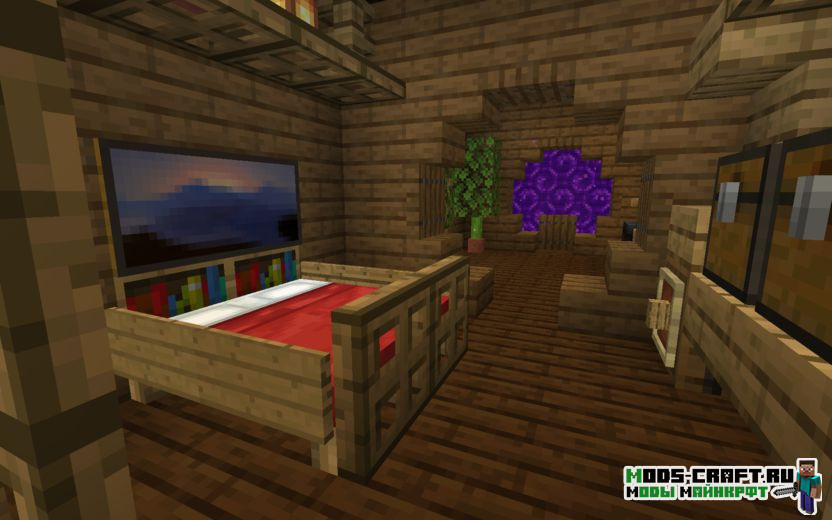 Карта предоставляет вам возможность посетить уютный дом хоббита с тёплым внутренним и наружным интерьером. В доме есть прихожая, гостиная, кухня, спальня и комната для занятий,портал в нижний мир и кабинет чародея.