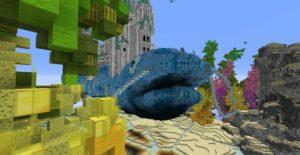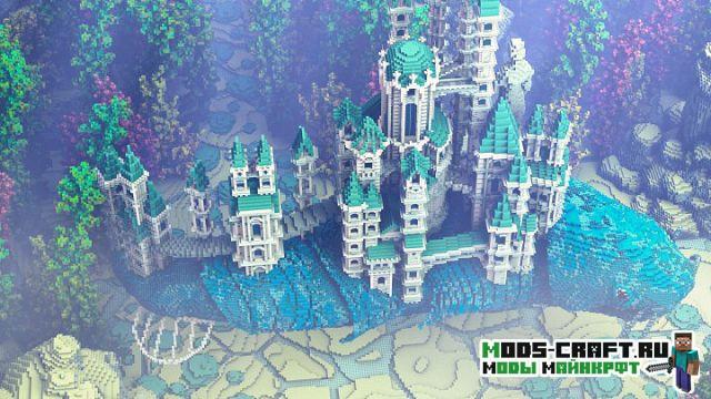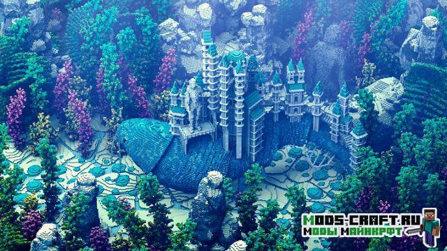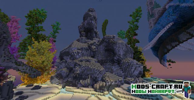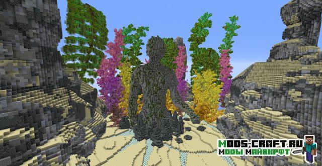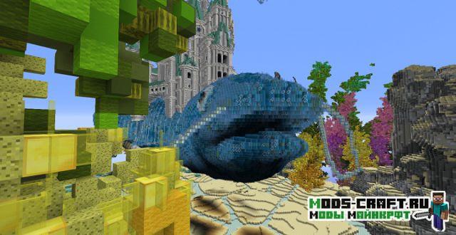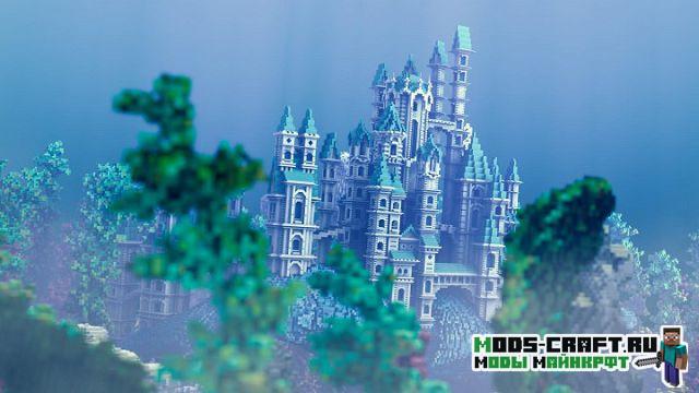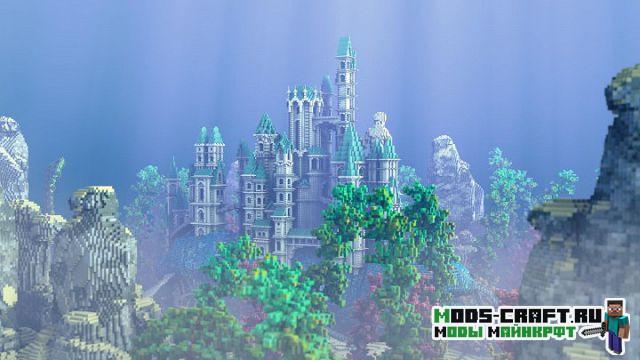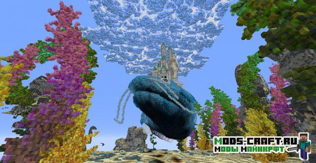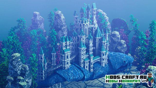Очень красивая карта под оригинальным названием «Traveling Atlantis», которая добавит огромный и красивый подводный мир в Майнкрафт. Спустись на дно и изучай для себя подводный город и вливайся в местную фауну. В центре расположен небольшой город и памятник культуры в виде статуи-человека и огромный рыбы.