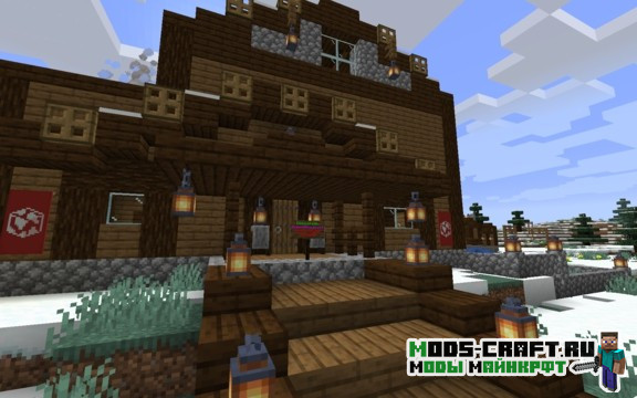 Небольшой зимний домик, стилизованный под тему новогода года. Помимо основного дома, здесь есть свинарник и небольшой гостевой домик, а рядом расположена большая деревня. В главном доме есть всё для выживания — сундуки, хранилища, оружейная комната и красивый вид из балкона. В общем отличный старт для нового выживания.