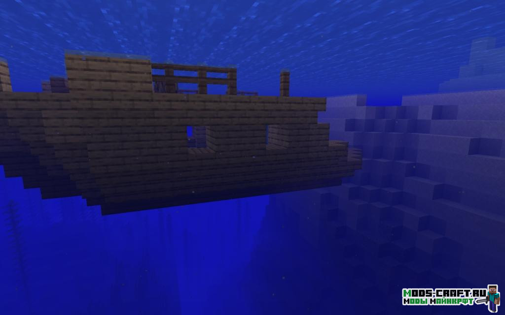 Данный сид перенесёт вас на маленький островок, где сразу же вы увидите разбившийся корабль, а чуть дальше него есть большой подводный храм. Если идти направо от места спавна, то можно выйти на большую сушу и найти там деревню по координатам 50, -757.