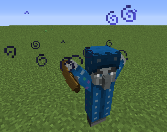 Новый моб — Иллюзор (Illusioner). Иллюзор — враждебный моб, атакующий игроков, жителей деревень, железных големов с расстояния 12 блоков. На игрока он накладывает эффект ослепления. На себя же он может наложить эффект невидимости и призвать четыре иллюзии, изображающих его самого.
