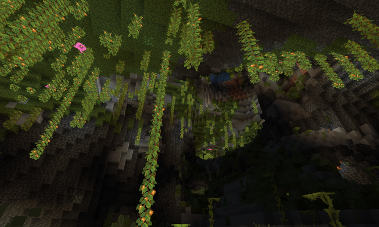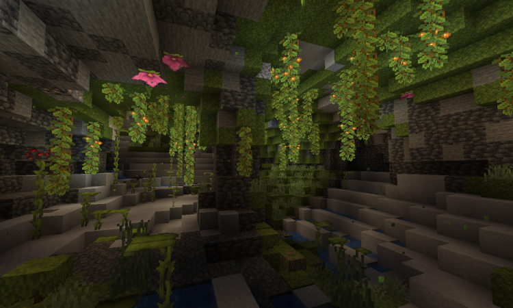 Оазиз под землей, который выглядит как заросшие пещеры с находящимися в них водоемами. Все находится в полутьме и выглядит очень красиво за счет светящихся ягод, которые растут на лиане, свисающей с потолка. Вокруг можно увидеть мох, травы, а так же деревья азалии и спороцвет, которые генерируются.