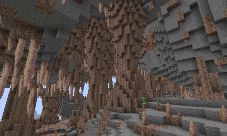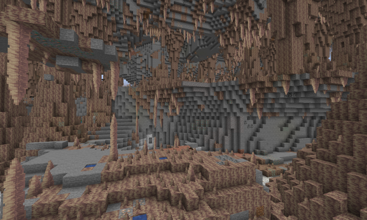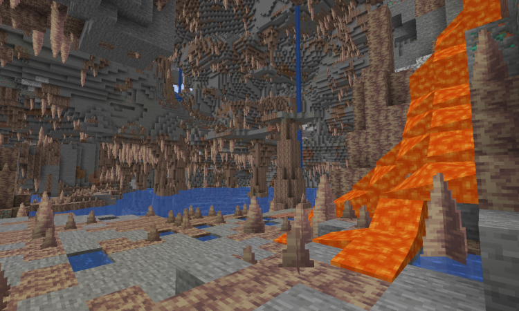 Большому изменению в данном обновлении подверглись пещеры, которые стали намного глубже. Если раньше они генерировались до Y = 0, то теперь до Y = -59. Данная генерация идет слоями: