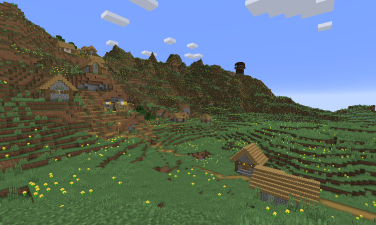 Горные луга — данный биом находится у подножья гор и примыкает к равнинам, другим биомам. На горных лугах находится много цветов на зеленом поле, трава и иногда одинокие деревья. Можно увидеть разных животных, например овец, основ, кроликов и других. Так же можно встретить деревни и разбойников.