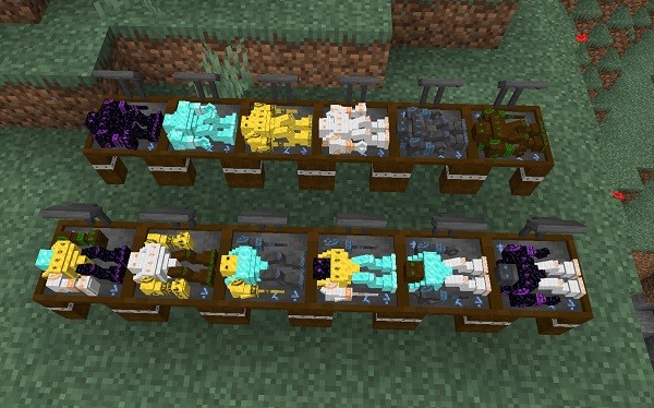 Детали можно изготовить из таких материалов как: дерево, камень, железо, золото, алмаз и обсидиан. Материалы можно совмещать! Состав материала меняет такие характеристики, как общая скорость движения конструкции, огнестойкость, может ли она плавать по воде и многое другое.