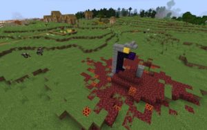 Появившись в данном мире вы появитесь возле месы с шахтой, рядом будет располагаться деревня на равнине. Дальше этой деревни будет стоять разрушенный портал в нижний мир. Удобный сид в плане быстрого развития, ведь мы можем сразу спуститься в шахту и добывать ценные ресурсы для себя, после чего починить портал и отправиться в нижний мир.