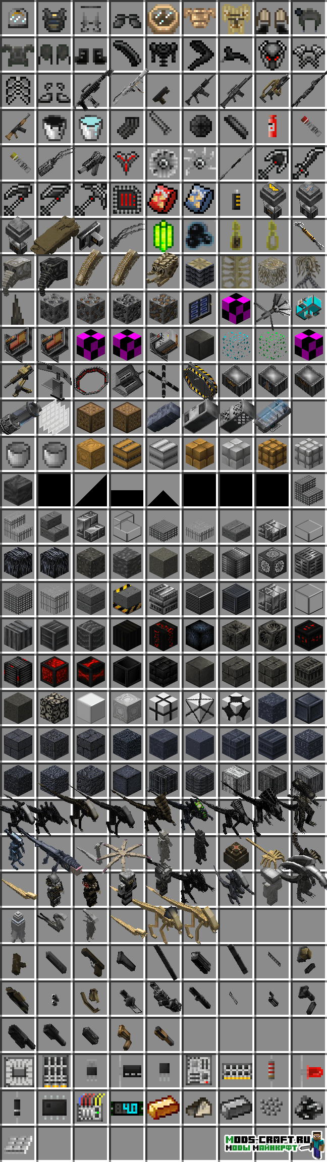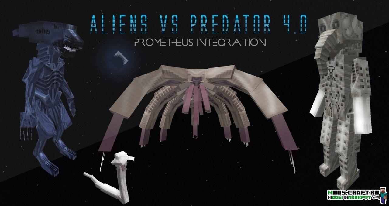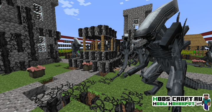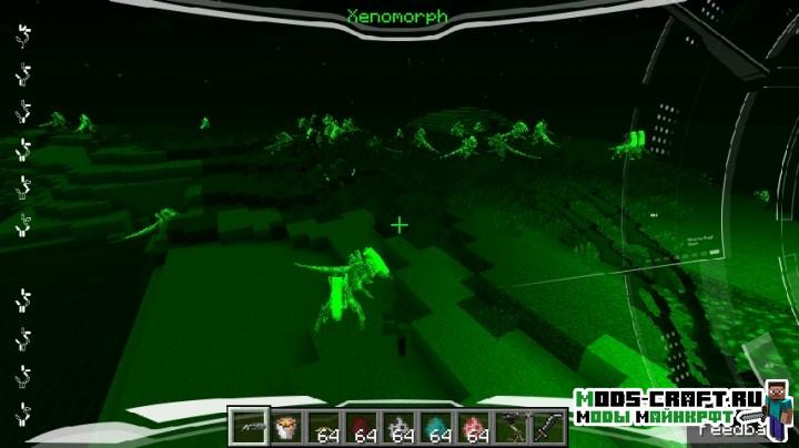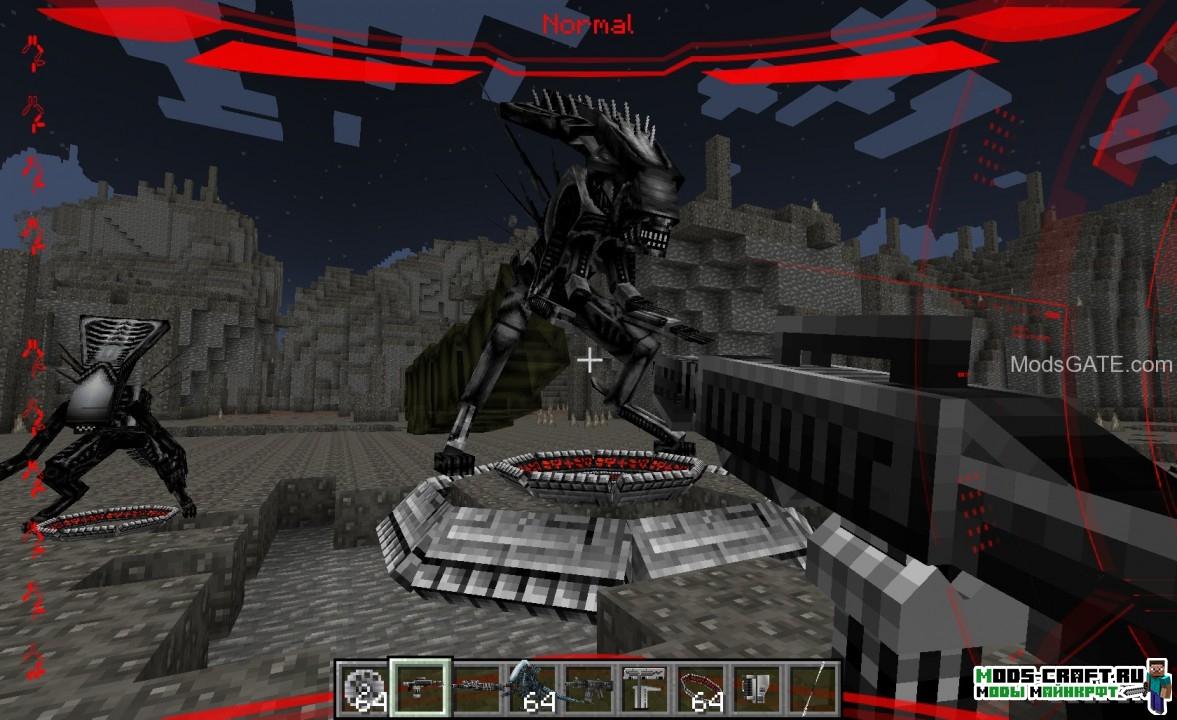 Мод по известной киновселенной «Aliens vs Predator» добавит в майнкрафт монстров — хищников и чужих, которые будут очень опасными противниками. Кроме этого в игре появится новое вооружение, сеты брони и блоки.
