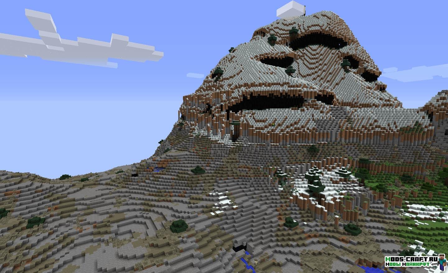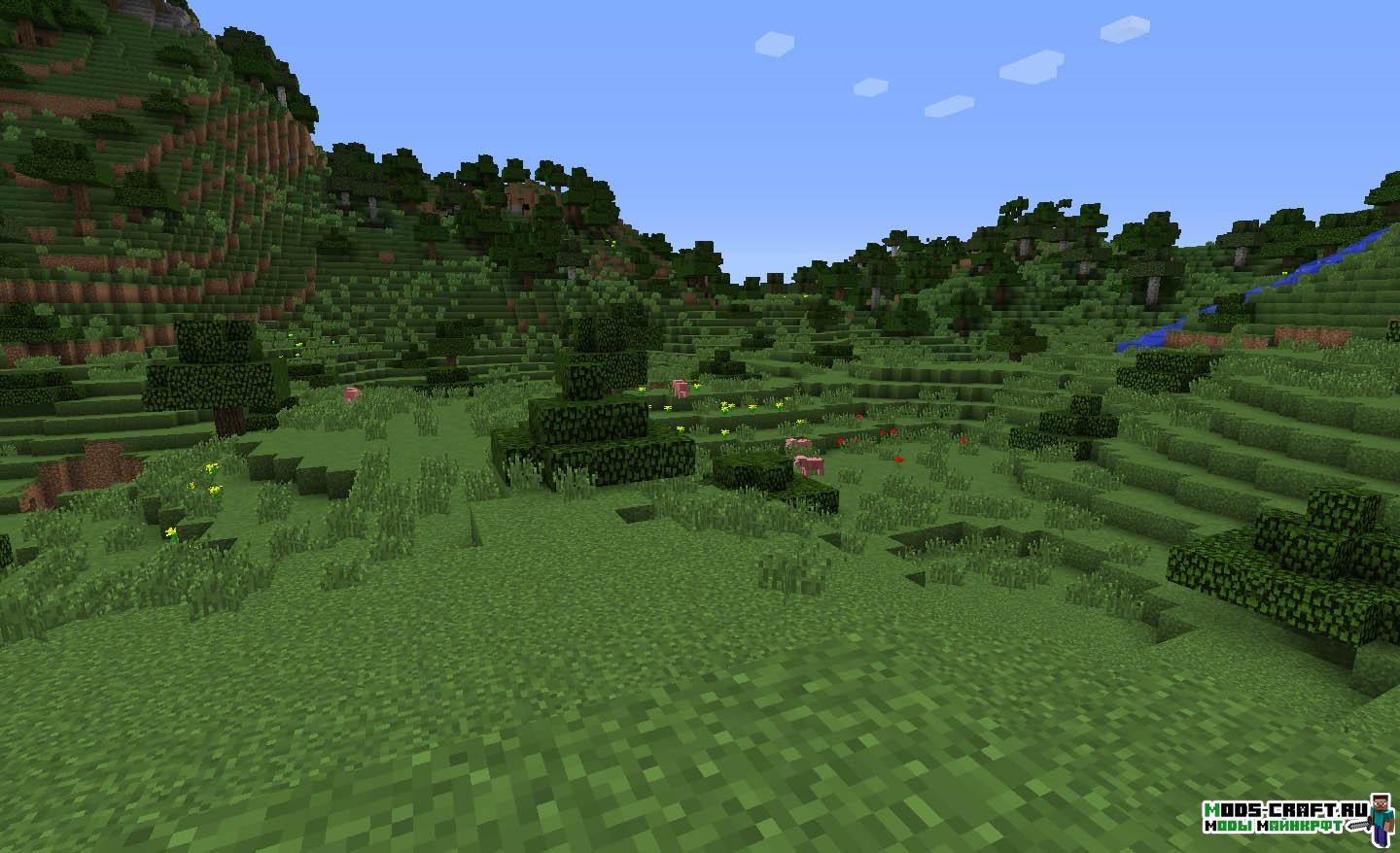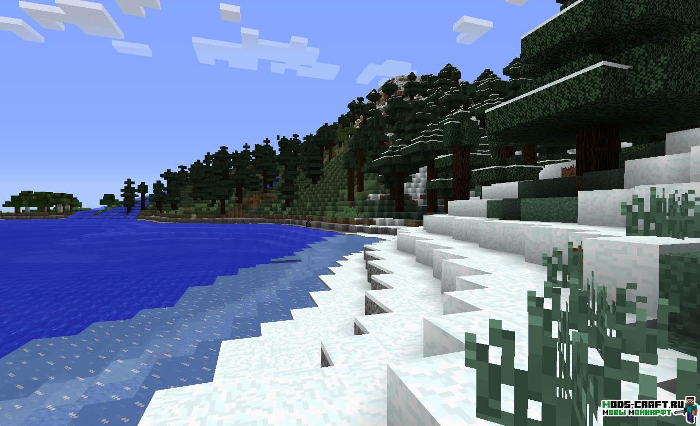Очень интересный мод под смыслом «Альтернативная генерация». Он полностью заменяет ванильную генерацию мира Майнкрафт на свою собственную, изменённую полностью.