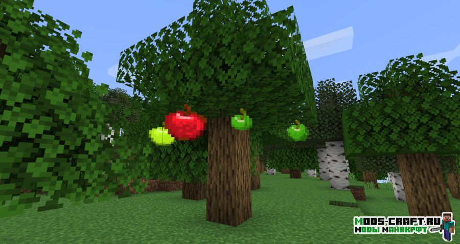 Мод Apple Trees Revived добавит легальный способ получения яблок в игре Майнкрафт, а именно вы сможете посадить саженцы двух типов и выращивать яблоки или золотые яблоки из соответствующих деревьев.