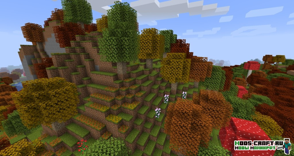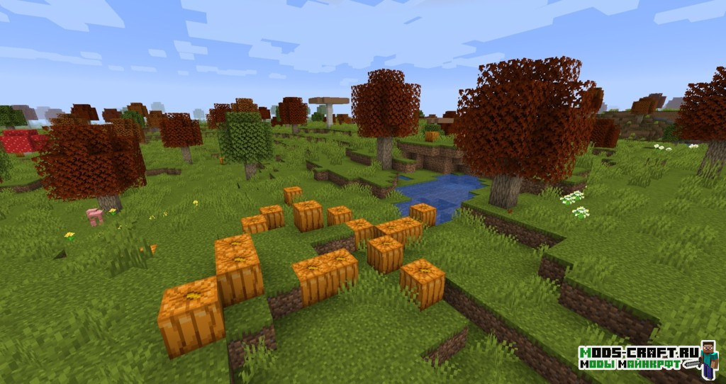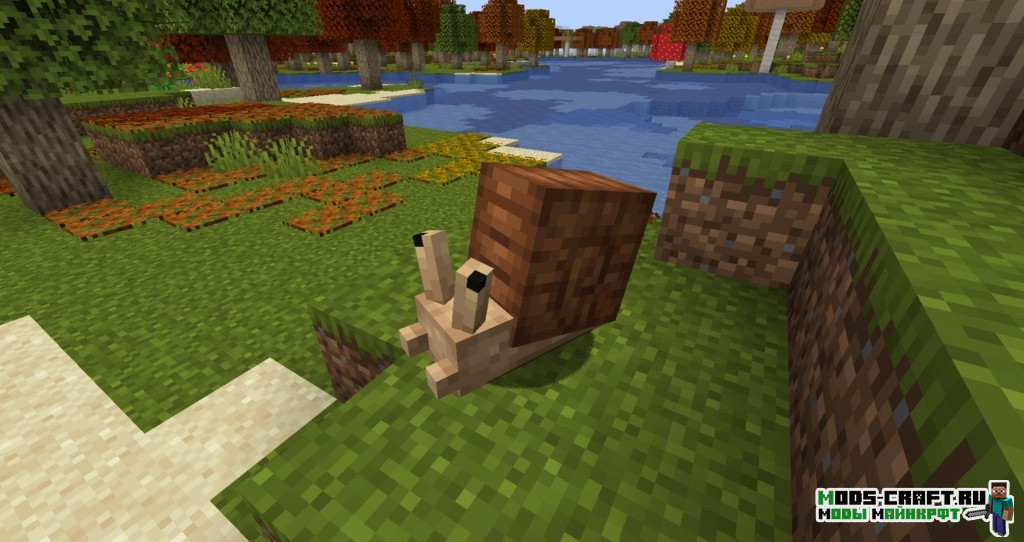 Autumnity добавляет уникальный осенний биом, а вместе с ним новые предметы, блоки и нового моба — улитку. При помощи неё можно изготовить крутую броню и наложить новые чары на блокирование отдачи.
