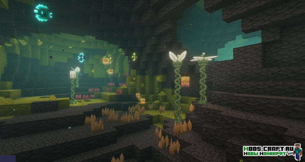 Мод BetterEnd улучшает измерения Края в Майнкрафт, добавляя в него новые биомы и изменяет имеющиеся. Каждый биом имеет свою собственную атмосферу, уникальные структуры, мобов, блоки и руды. Также вы сможете создать пару новых сетов брони и оружия из новых ресурсов мода.