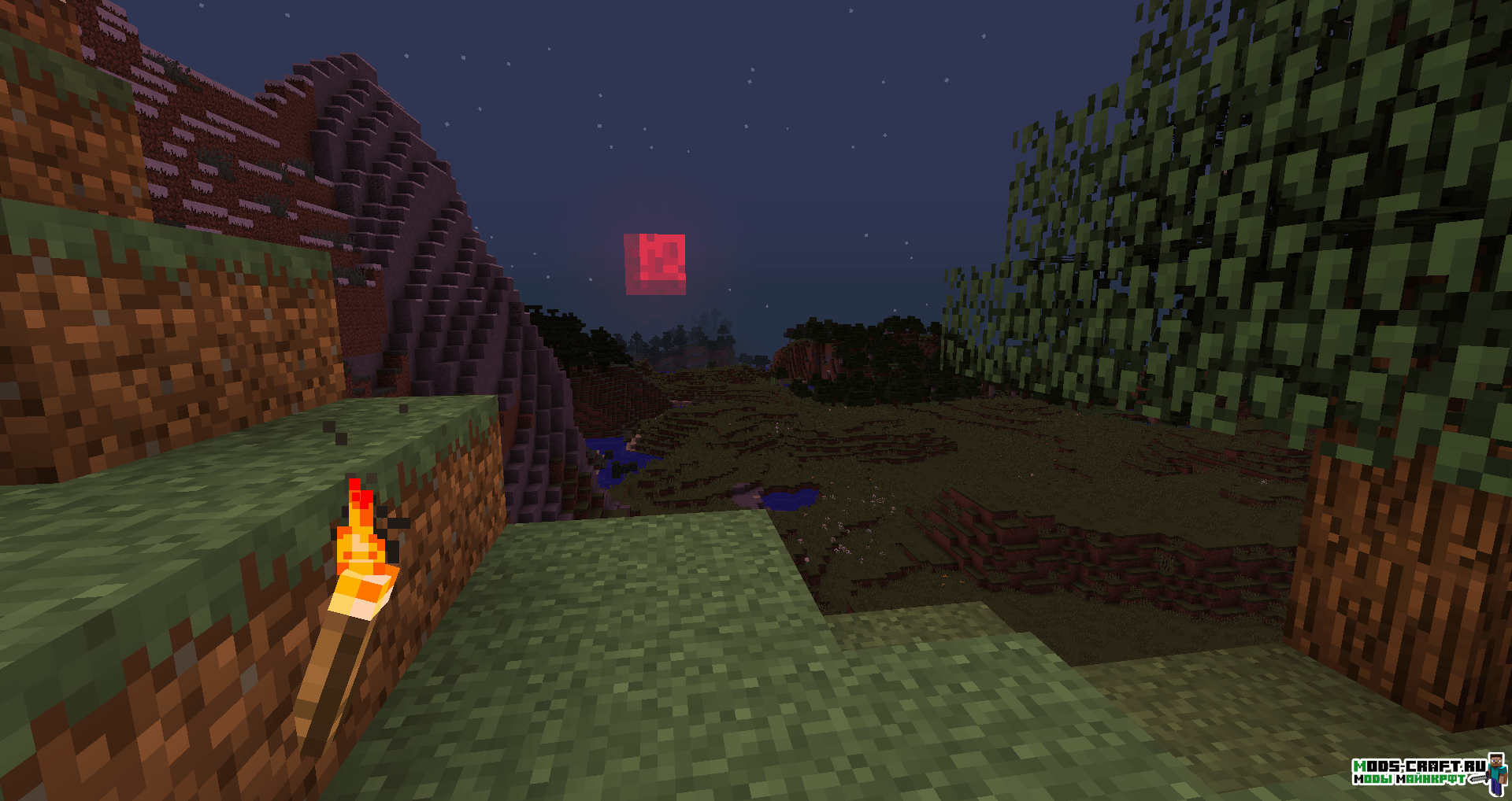 Теперь ночью будет появляться красная луна, мир превратиться в настоящий ужас — монстры будут появляться практически в 5 раз чащу и их станет намного больше, плюс они станут намного опаснее. Для особых любителей опасных приключений в Майнкрафт рекомендую.