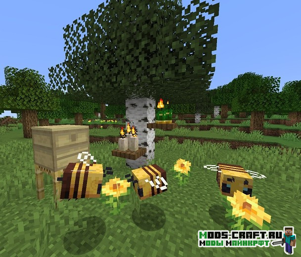 Этот мод специально создан для прирождённых пасечников! Ведь он добавит намного больше контента связанного с «Пчелиным обновлением», среди которого – разные виды ульев, новые медовые блоки, палочки для безопасного сбора мёда и многое другое!