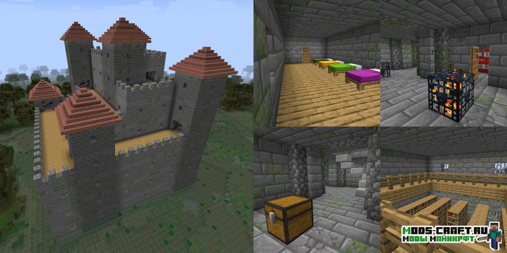Этот мод добавляет генерируемые по миру замки, наполненные монстрами и сокровищами. Автор полагает, что это побудит игрока исследовать эти структуры в поисках сокровищ и опасных приключений.