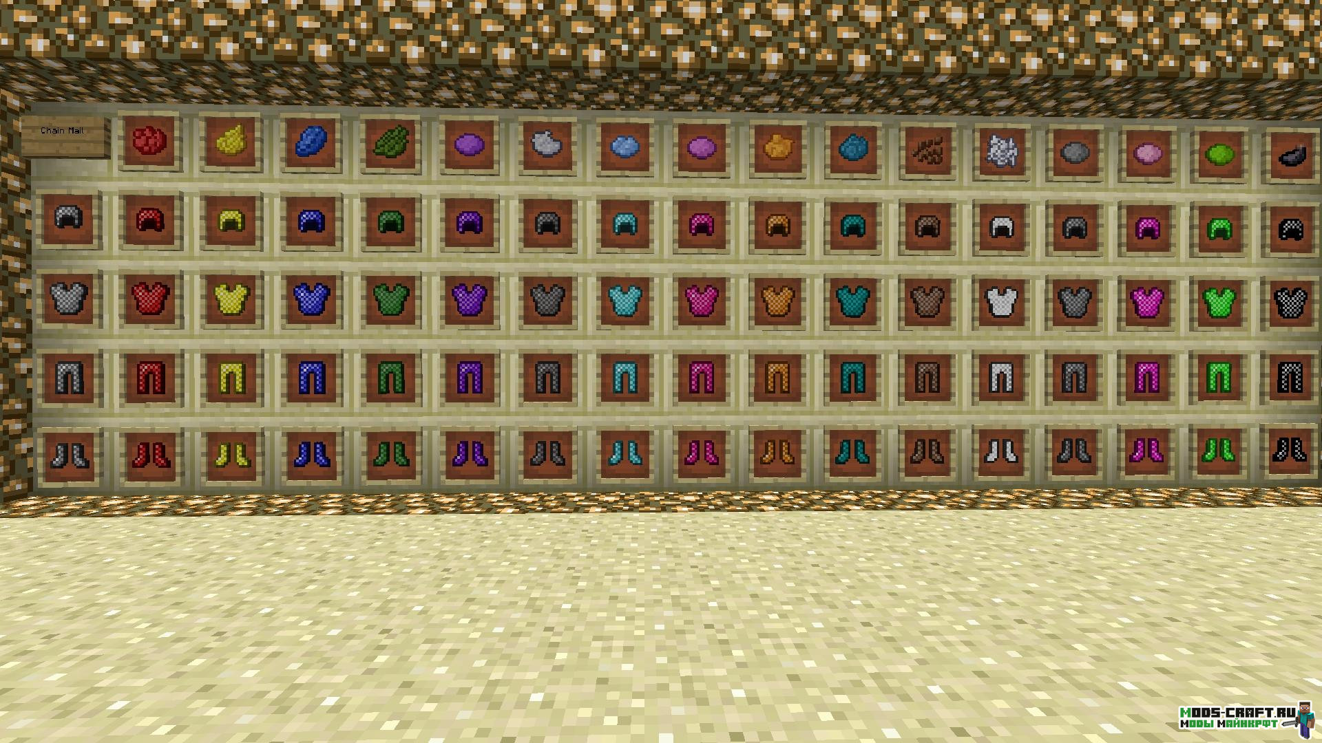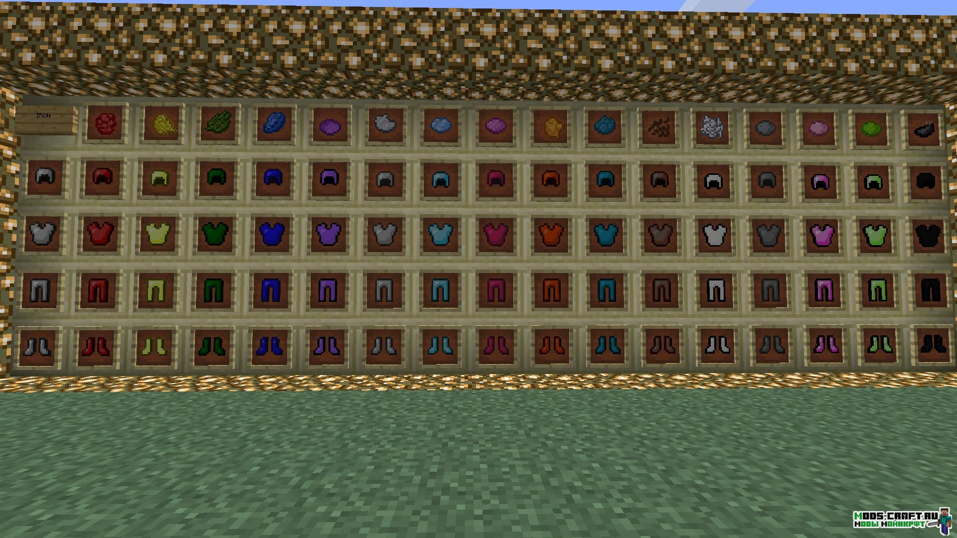 Мод Colorful Armor позволяет вам красить ванильную броню в любой понравившийся цвет. Для этого в верстак положите часть брони и нужный краситель, а чтобы убрать цвет с брони воспользуйтесь губкой. Кастомизируй свою броню и придай своему игроку уникальный вид!