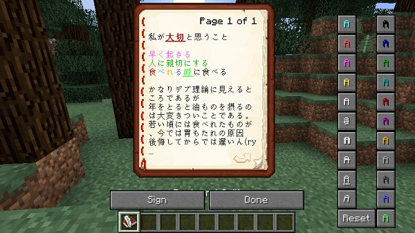 ColorUtility добавляет новый функционал, при помощи которого можно украшать таблички. Вы сможете форматировать текст, делая его жирным, курсивным или подчёркнутым, а также изменять цвет устанавливаемого текста при помощи кнопок.