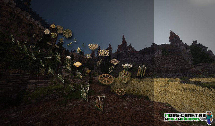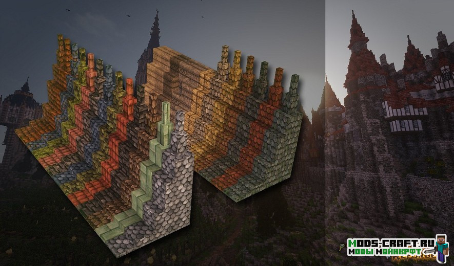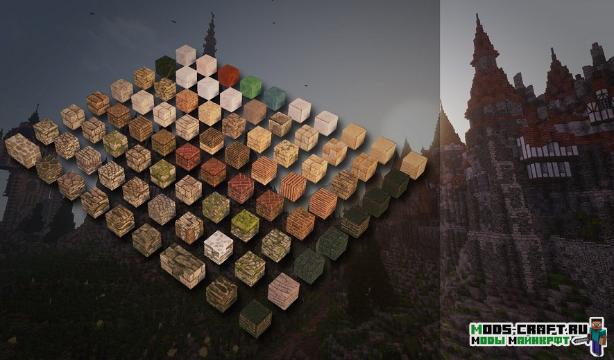 Conquest Reforged — это модификация, добавляющая сотни новых декоративных блоков и уникальных текстур средневековья в Майнкрафт. Благодаря наличию собственного текстурного пака, у каждого блока почти бесконечные вариации, что позволяет создавать уникальные постройки. Изменённое меню выбора блоков и новый творческий инвентарь с колёсом выбора блоков помогут вам найти нужный блок.