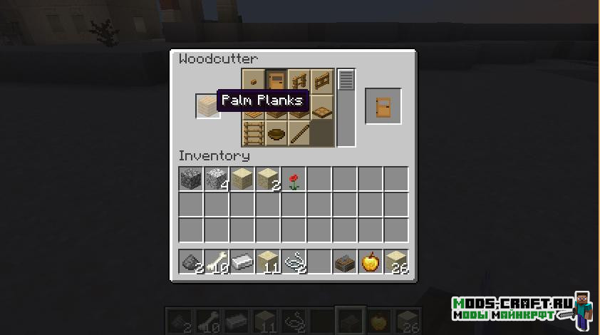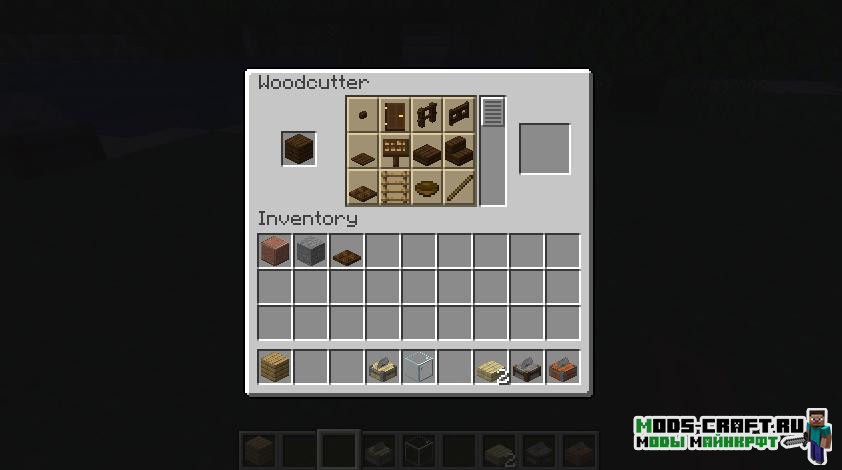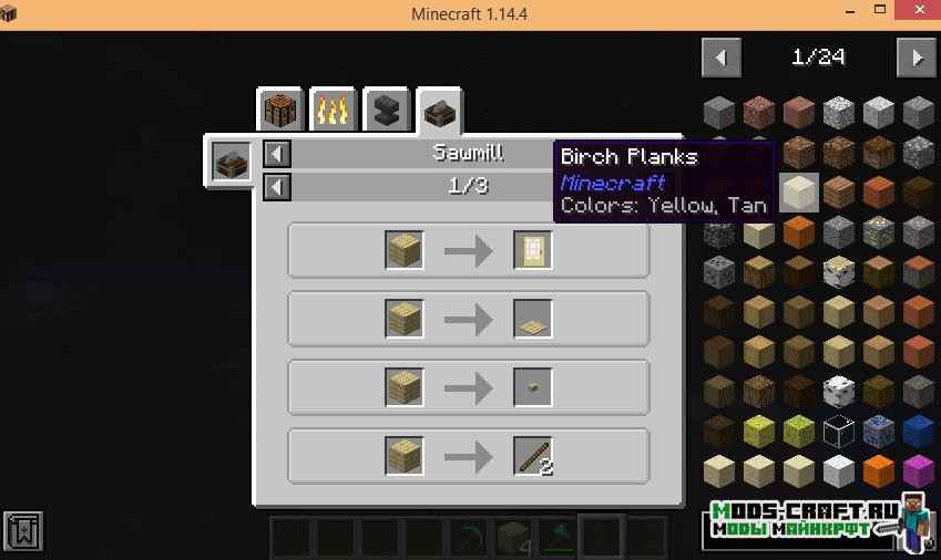 ВЫ сможете создать специальную пилу, которая будет аналогом камнереза, но только для дерева. Всего таких пил будет 6 видов (для каждого вида ванильных досок) и они смогут обрабатывать блоки любого дерева, даже из мода Biomes O’ Plenty.