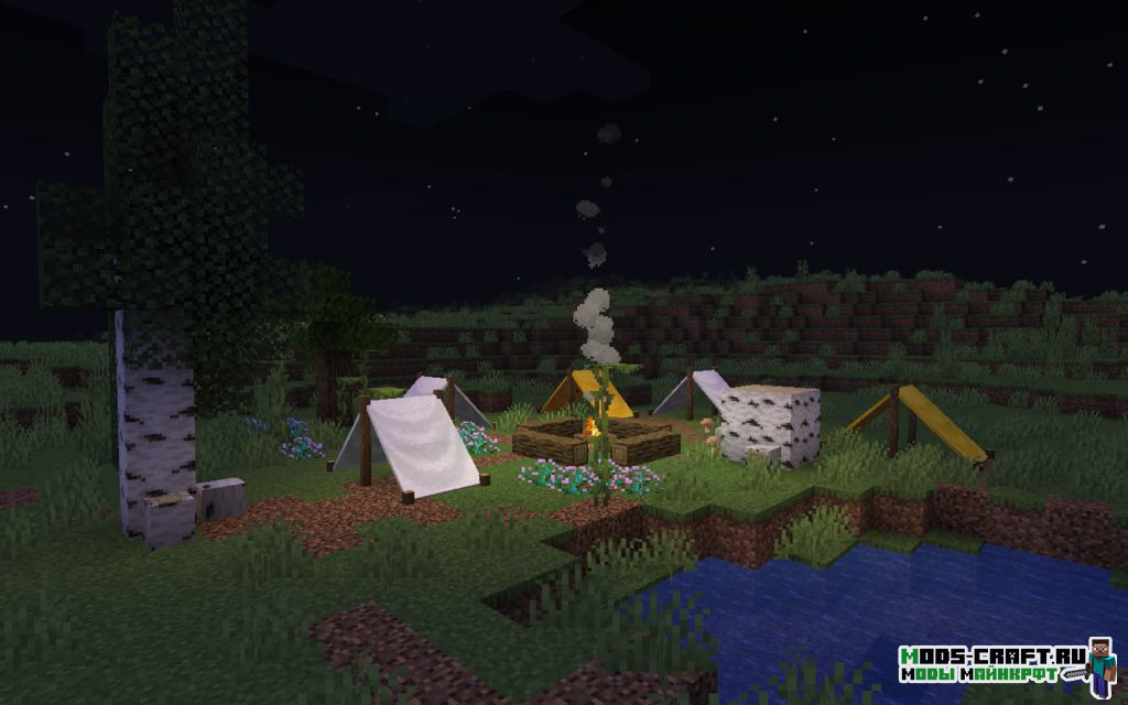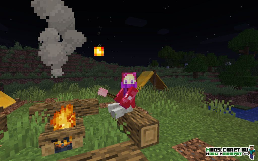 Данный мод добавляет вещи, связанные с тематикой путешествий и туризма: палатки, спальные мешки, зефир, трость и многое другое. Также вы сможете найти заброшенный лагерь в лобом биоме.