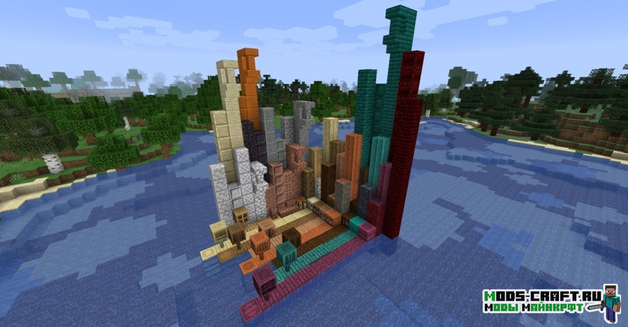 Данный мод добавляет большое количество новых строительных блоков для создания уникальных и красивых построек. Теперь у вас будет гораздо больше вариаций для строительства.