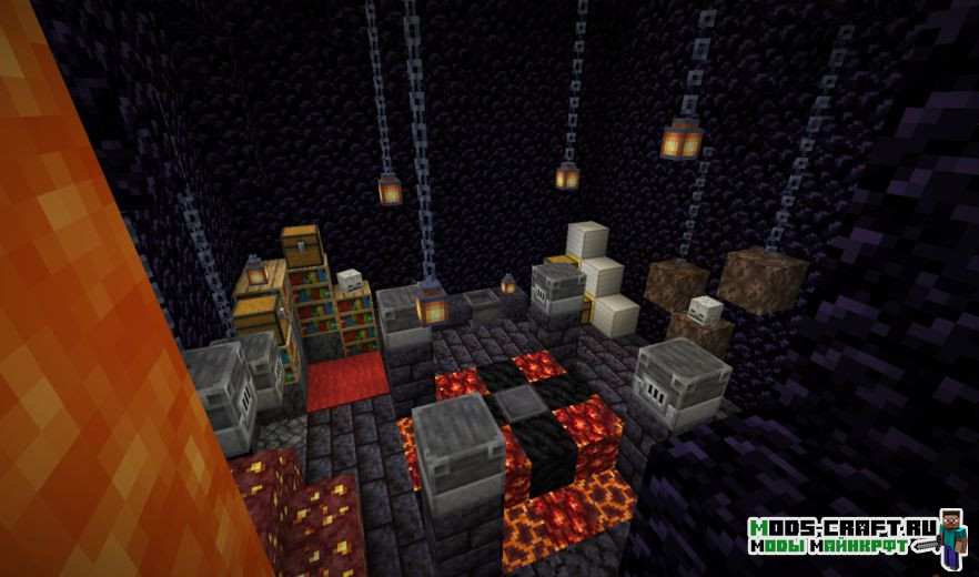 Curious Lands — это мод, который сосредоточен на двух вещах — добавления большого количество руд для каждого из биомов, а также добавления способа для получения всех ресурсов в мирном режиме. Вы сможете открыть для себя новый способ получения блоков при помощи взаимодействия с ними. Например, чтобы получить огненные стержни вам нужно будет погрузиться в лаву, держа в руках определенные предметы. Также мод добавит пять видов редких структур-святынь, которые будут разбросаны по миру и давать игроку полезные вещи и бонусы.