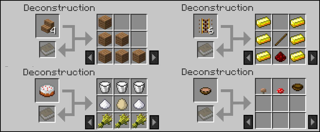 Мод Deconstruction Table является очень полезным в одиночной игре и позволяет разрушать заранее скрафченные предметы в Майнкрафт, при этом все ресурсы вернуться обратно.