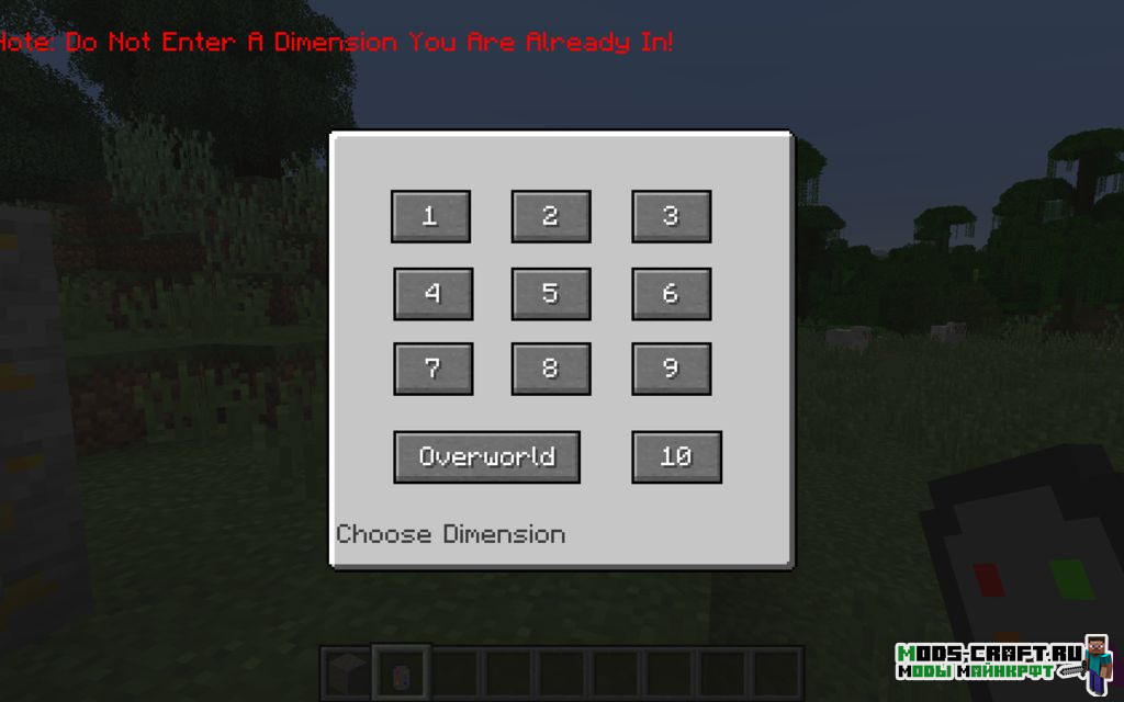 Мод Dimension Remote добавляет новую руду, по редкости она аналогична алмазной. С помощью этой руды вы можете создать пульт управления измерениями. С ним у вас будет доступ к 10-ти различным измерениям, являющиеся симуляцией основного мира. Щёлкнув на нужную кнопку, мы мгновенно переместимся в новое измерение.
