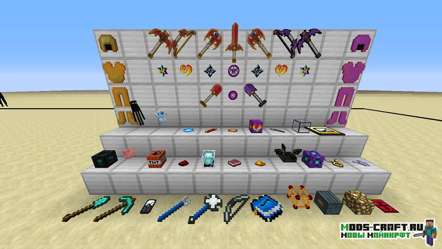 Большинство предметов делается из новой руды — Дракониум (генерируется в обычном, нижнем мире, а также в Крае). Добывайте её и создавайте что-то невероятно мощное, например: