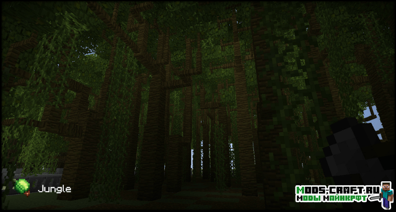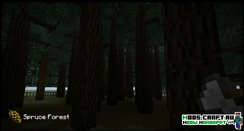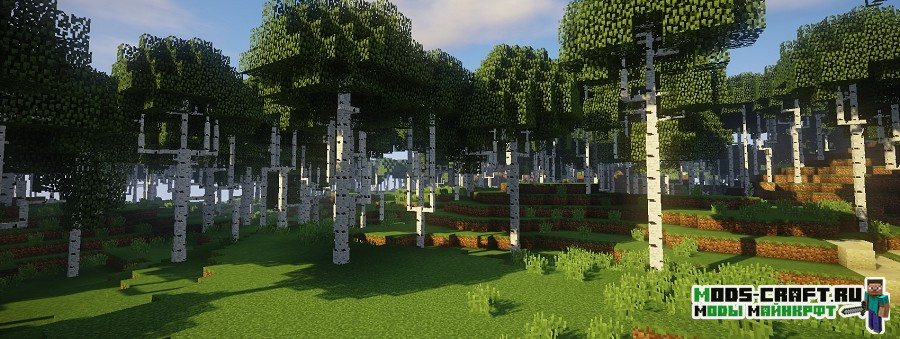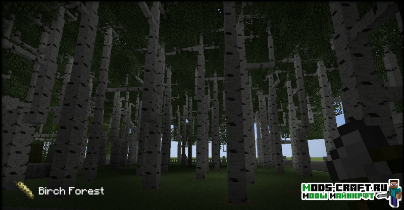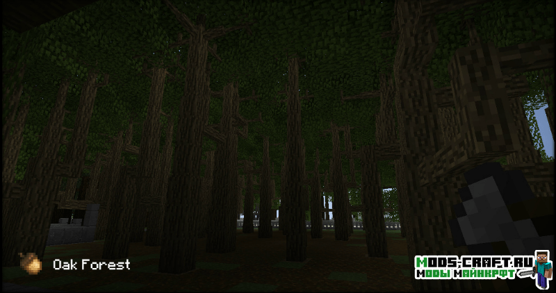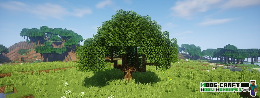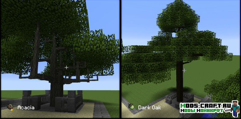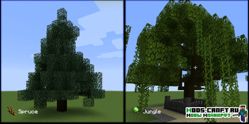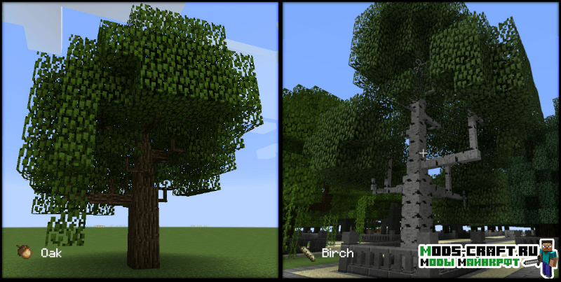 Мод Dynamic Trees делает игру более игру более реалистичней в плане роста деревьев. Теперь они будут расти самостоятельно от саженцев до старости, и медленно гибнуть. Кроме этого выглядеть деревья станут как настоящие с ветками и сучками, корневая система и улучшенная листва. А если срубить нижний блок дерева, то оно будет сломано полностью с 3D-анимацией падения. При всем этом рост деревьев будет зависеть от почвы, если она будет плодородной, то растение вырастит большим и крепким.