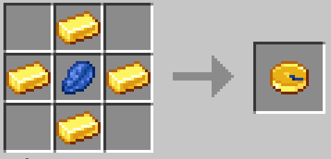 Создать динамический компас можно при помощи 4 золотых слитков и лазурита.